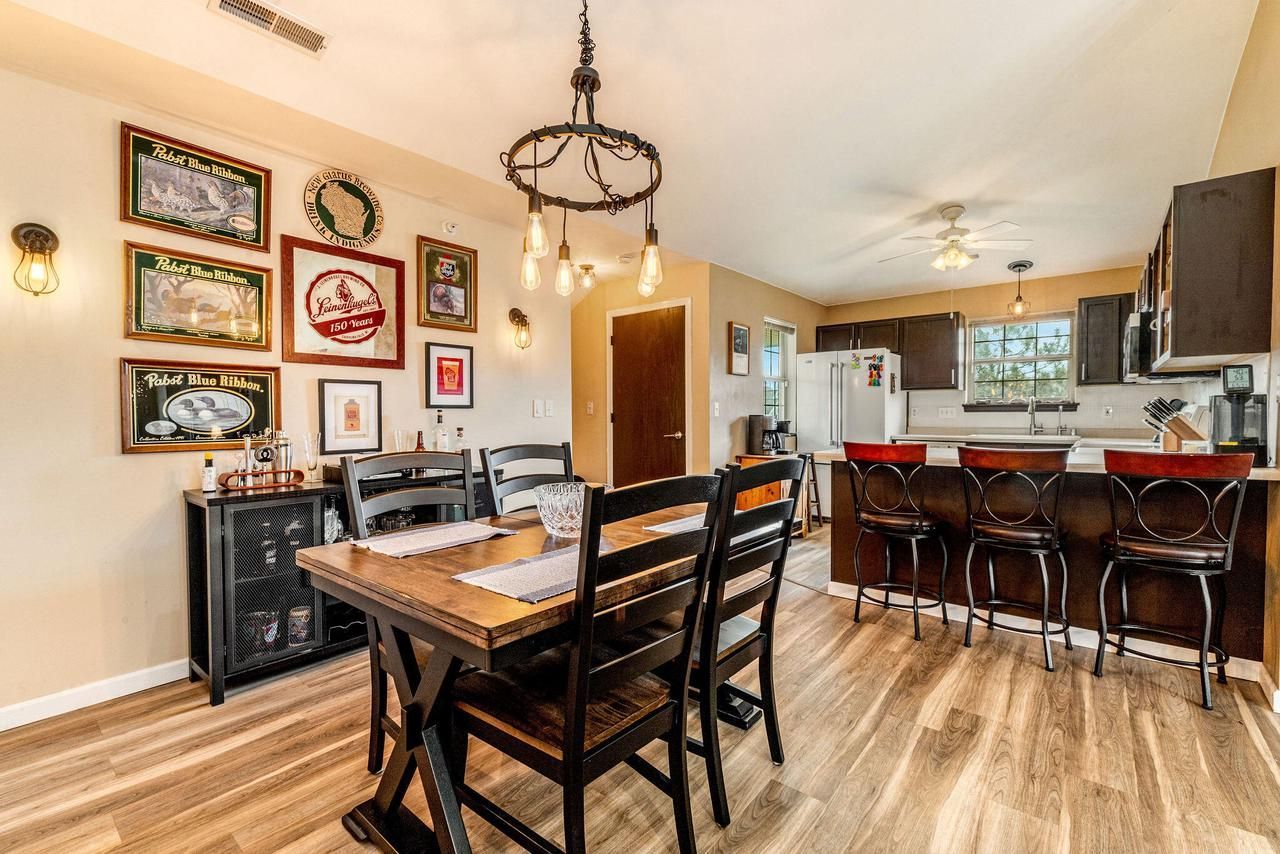 Beautifully updated 2nd-floor end unit in the coveted Elmbrook School District. Privately tucked away yet moments from shopping, dining, parks, trails & coffee shops, this move-in ready condo offers the best of both worlds. Step inside through your private entry with video doorbell & renovated custom staircase. The open-concept layout features soaring cathedral ceilings, LVP flooring, fresh paint & modern lighting for a bright, contemporary feel. A spacious great room flows seamlessly to a covered patio green space-perfect for morning coffee or evening unwinding. Thoughtfully designed split bedroom layout, in-unit laundry & attached garage add comfort & convenience. Pet-friendly, owner-occupied community with low condo fees & taxes makes this sleek home an exceptional find.