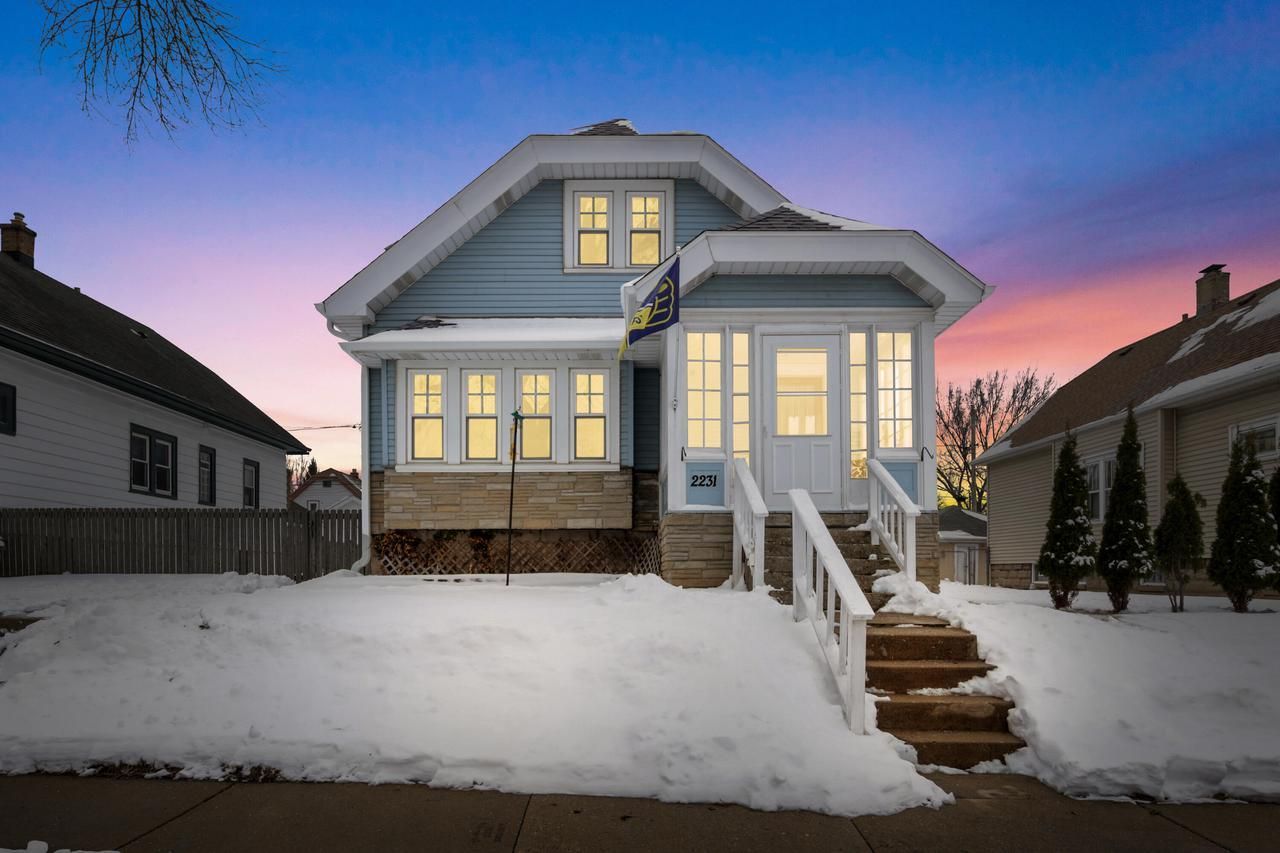 Fall in love with the charm and warmth of this inviting bungalow in West Allis. The enclosed front porch welcomes you in and sets the tone for the character you'll find throughout the home. Step into a bright living and dining space filled with beautiful woodwork and a classic built-in china cabinet that adds timeless appeal. The kitchen features granite countertops and a functional layout that makes every day cooking easy. Two bedrooms and a full bath on the main level offer convenience, while upstairs you'll find two additional bedrooms, another full bath, and a large primary retreat. The partially finished basement provides extra space to relax, entertain, or create your ideal rec room. Outside, the garage offers added attic storage along with a side parking slab for extra convenience.