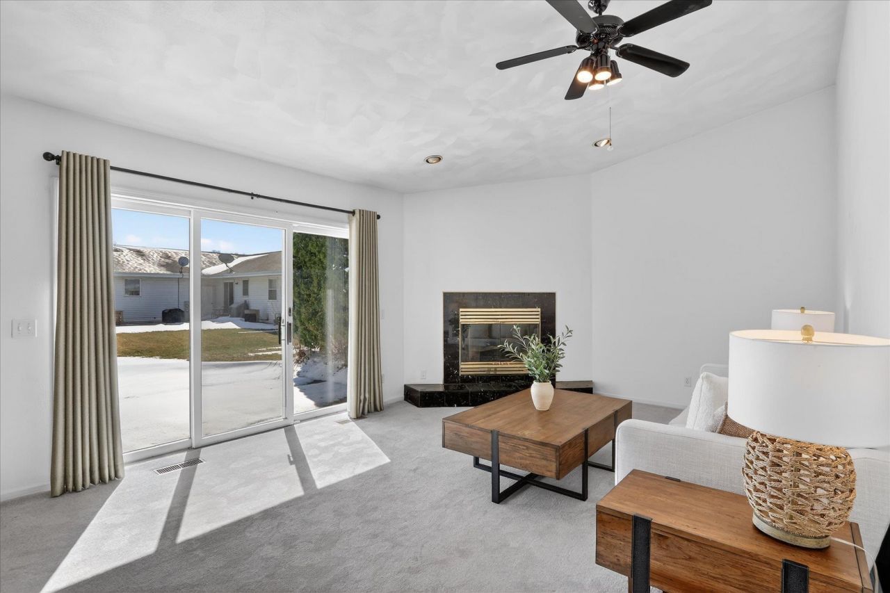 Originally owner-occupied and custom built, this meticulously maintained condo offers quality throughout with no condo fees. Featuring 2 bedrooms, 2 full baths, and 1,317 sq ft, you'll love the cathedral ceilings and spacious open living area filled with natural light. The large kitchen includes a breakfast bar and great flow for everyday living. Enjoy the bright 13x10 three-season room and a huge primary bedroom with double closets. Quality built with Andersen windows and a mostly brick exterior, plus a 2-car finished & attached garage. Exceptionally clean and well cared for. Located in the desirable Briar Crest neighborhood on Janesville's north side?just minutes to shopping and I-90