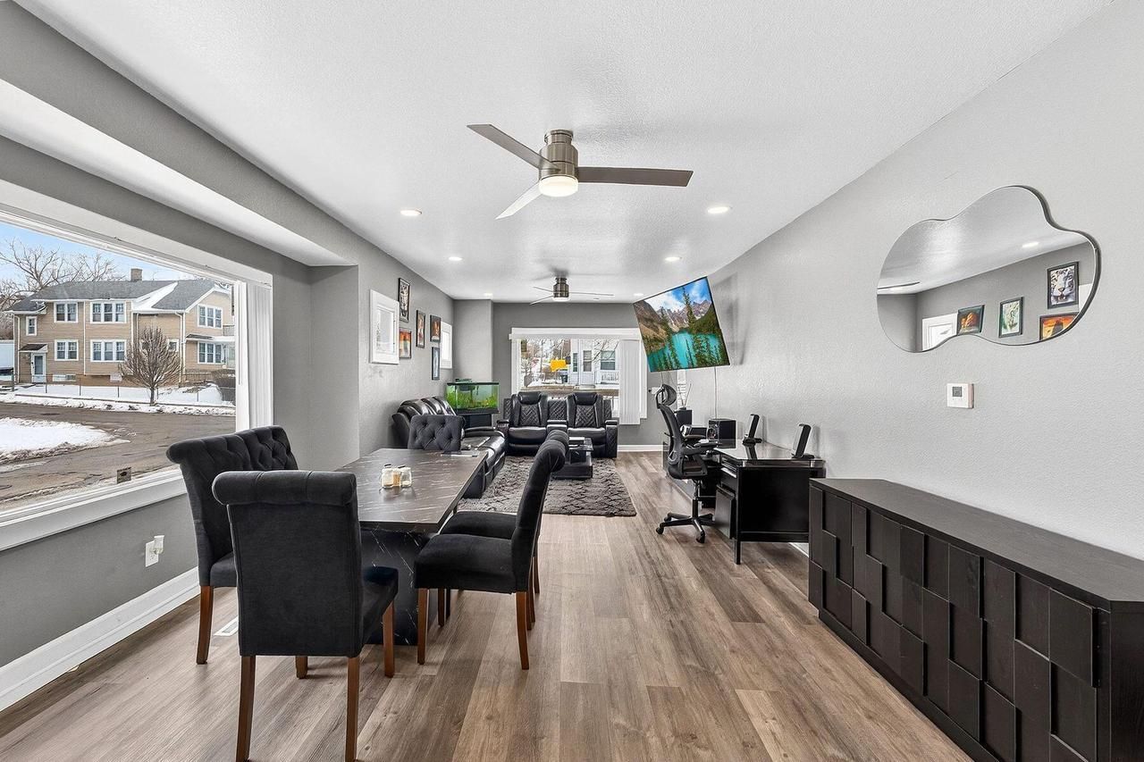 A must-see duplex that perfectly suits an owner-occupant or a savvy investor looking to expand their holdings. This charming 1.5-story bungalow features a welcoming front porch leading into a stunning lower unit with 2 beds and 1.5 baths. Enjoy a seamless flow between the living area, dining room, and a bright, airy kitchen. A versatile front flex room serves perfectly as a home office or formal dining space. The lower level boasts a stylish tiled walk-in shower and convenient in-unit laundry. Upstairs, the cozy 1-bedroom flat shines with new flooring, fresh paint, and an updated bath. The exterior is a true oasis featuring a deck, patio, pergola, and pool, perfect for entertaining. Complete with a 2-car garage, this turnkey gem is a must-see! Exterior photos virtually enhanced.