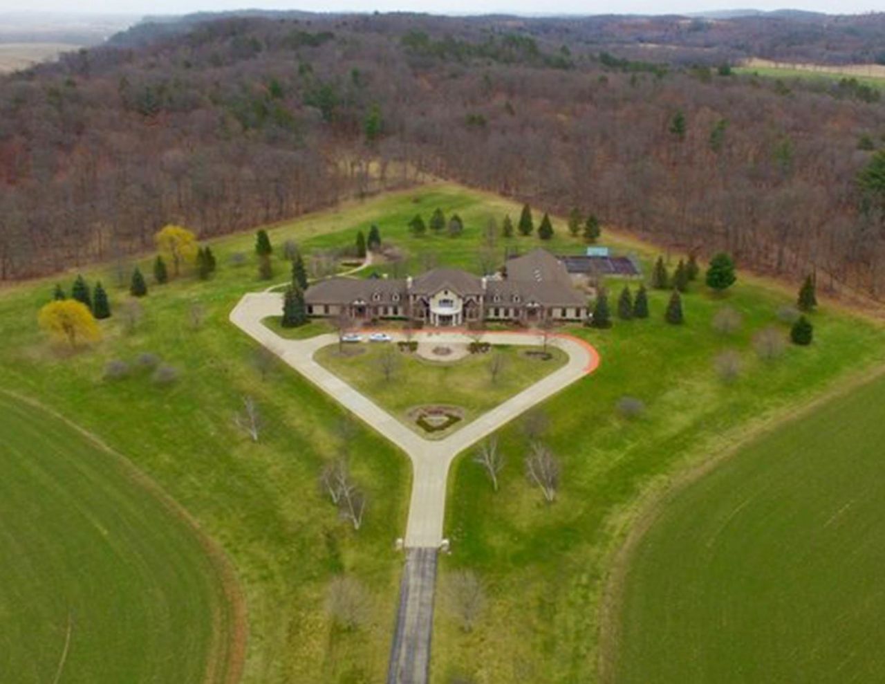 This well-maintained residential home is available for pre-auction bidding as part of a larger land auction to be held in late spring, allowing buyers to submit offers prior to the live auction date. Extraordinary private country estate in rural Wisconsin offering luxury, privacy, and exceptional amenities near Camp Douglas. This 17,575 sq ft residence is accessed via a gated entrance and features a grand foyer with double staircase, expansive living areas, and oversized windows with scenic views. Main level includes a gourmet kitchen, formal living room, family room with fireplace, gentleman's den, two bedrooms, and circular music room. The primary suite offers walk-in closets, spa-like bath, and dual dressing areas. Upper level includes two en-suite bedrooms and loft. Lower level features game room, theater, bedroom, bath, and storage. Amenities include elevator, indoor pool, courts, fitness center, and trails.