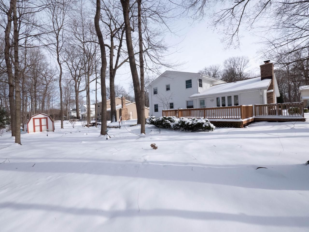 Room to roam in this exceptionally well maintained 4BR colonial in fantastic location. Over 2,000 sqft, with a beautifully updated kitchen with gorgeous cabinets and solid surface counters, open to sunny dinette and family room with lovely brick fireplace. Dining room, living room and half bath complete the main level. 4 nice sized bedroom up. Tiled full bathroom has jetted tub and walk-in shower. Partially finished lower level for even more living space with tons of storage space. Relax and enjoy the mature yard from the large deck. Don't miss this one!