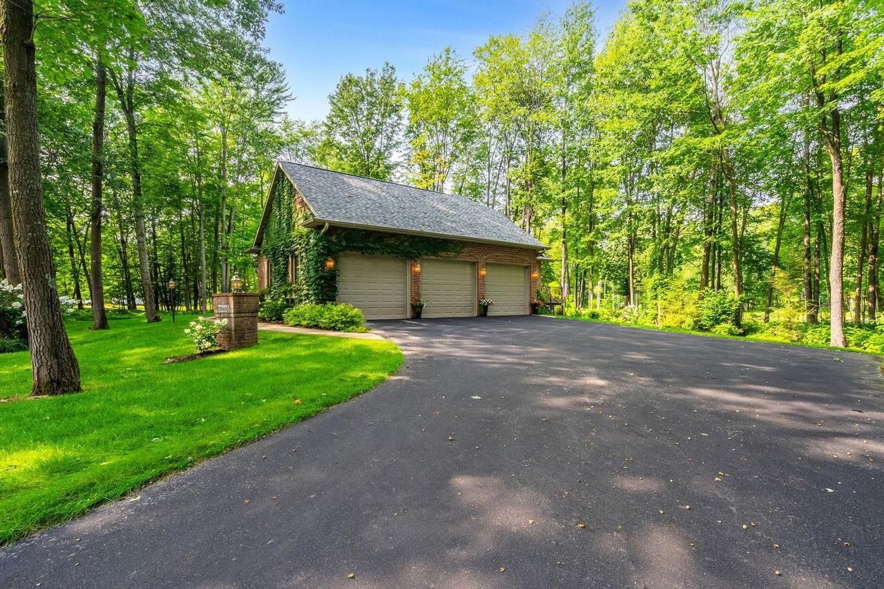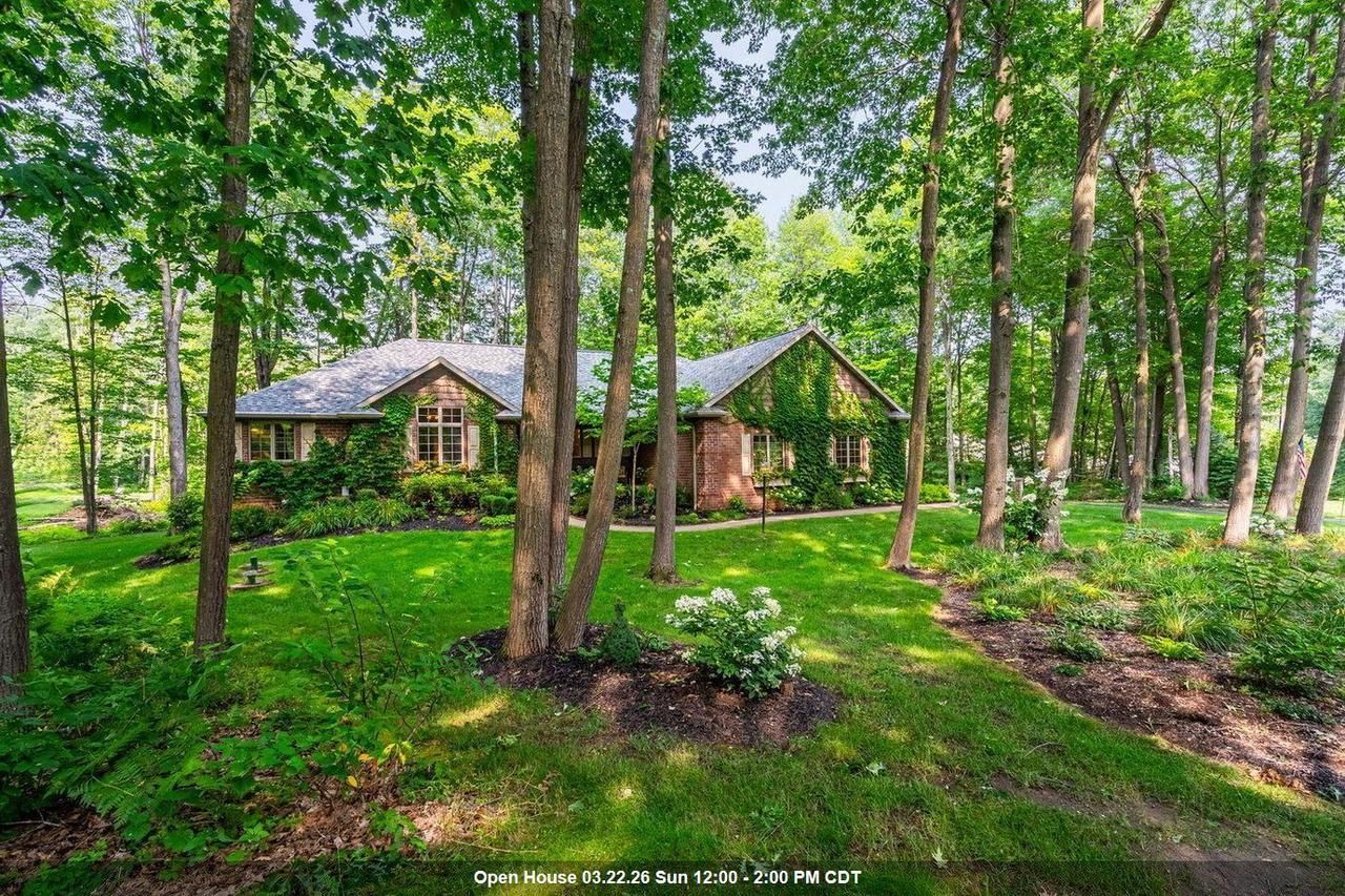 ALL BRICK 4-BEDROOM 3 1/2 BATH RANCH PERFECTLY PLACED ON A POND W/YOUR OWN SAND BEACH! Serene country setting on 1.53 wooded acres w/extensive landscaping + irrigation system. Large kitchen w/granite counters, hearth area, & updated appliances open to new Trex deck overlooking pond, beach and backyard. Theatre room in LL includes screen & all components. Adjacent fam room has radiant in-floor heat, fireplace & granite wet bar w/2 mini fridges. Garage completely finished w/acrylic floor, sink, workshop, e-charger, Dayton heater & access to LL. There's more...FURANCE & A/C NEW 2024, ROOF REPLACED 2022, NEW CARPET 2025 & 2026. All appliances included! Pond well maintained, aerated & stocked w/pan fish. Just 20 minutes from GB. MAKE THIS YOUR EXQUISITE PARADISE OR A VACATION HOME!