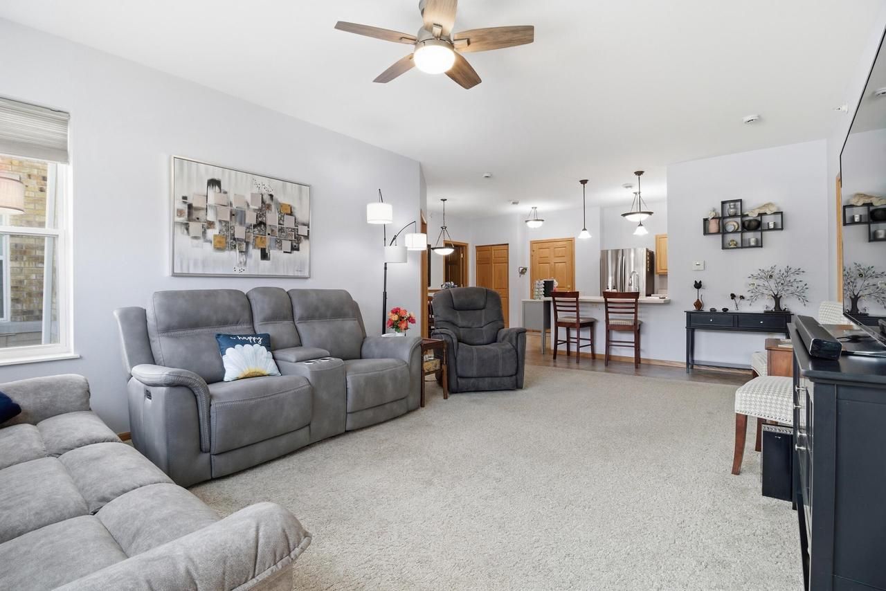 Beautiful first floor condo in Francis Woods, adult 55+ community! True stair free living with wide doorways and no steps! 2 bedrooms, 2 full baths, and 2 heated underground parking spaces with elevator access, plus private storage. Open concept layout with eastern exposure! Kitchen includes breakfast bar, newer stainless steel appliances, comfort height cabinets, and updated flooring. In-unit laundry for added convenience! Split bedroom floor plan offers privacy for guests or office space. Spacious primary suite with ample closet space and private bath featuring walk-in shower and updated flooring. Secure building with private and lobby entrances! Private patio! Association handles lawn care, snow removal, and exterior maintenance. One dog under 25 lbs permitted.