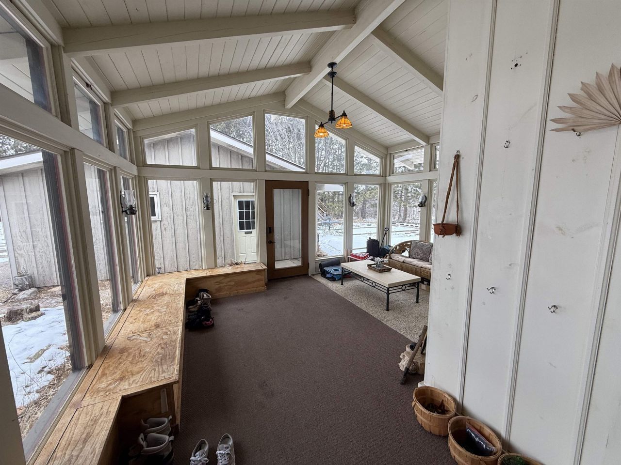 LOCATION, LOCATION, LOCATION! Wonderful opportunity to own this beautiful home with an amazing location directly between Baraboo and Lake Delton with views of the Rolling Bluffs! Home features a beautiful Sun Room and very unique open-concept layout with sunken living room, raised dining room, and sunken den/office space with wood burning stove fireplace. Property consists of 4 bedrooms, 3 bathrooms, 3 wood stove fireplaces throughout, 2 full kitchens, one on each level allowing for potential mother-in-law suite. Both the home and oversized 2.5 car heated garage had new roofs put on in 2021. Lot is almost 2 acres of semi private level land with gorgeous tall pines layered on the back lot line. Treehouse, fire pit, and raised garden beds compliment this back yard nicely. Close to everything the Dells/Lake Delton has to offer with attractions, dining, entertainment, shopping, and more while also being close to beautiful historic Baraboo and Devils Lake.