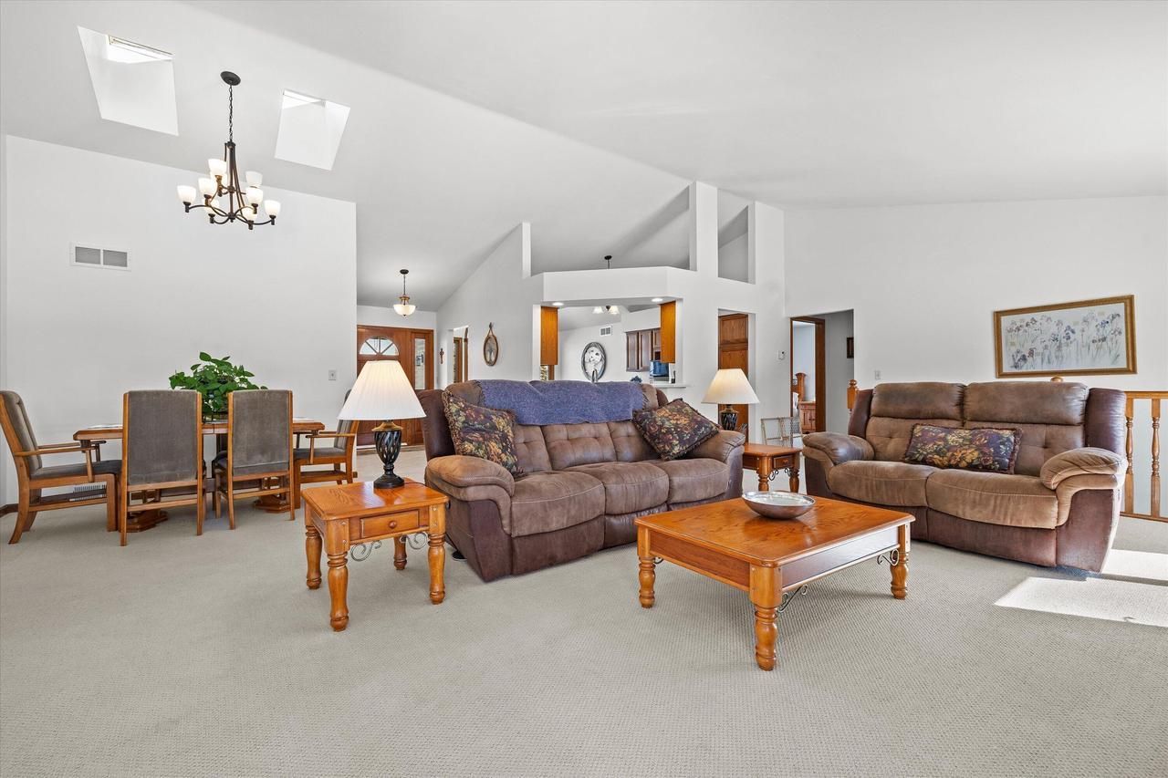 WAUKESHA. Welcome to this beautifully maintained 3 bedroom 2 bath ranch in the Waukesha West School District. Set on a large acre plus landscaped lot this home blends comfort and function. The open concept layout is highlighted by vaulted ceilings that create a bright, airy and spacious feel throughout the main living areas. The split bedroom floor-plan provides added privacy and a the large eat-in kitchen is ideal for gatherings. A sun drenched great room offers a natural fireplace and leads out to a large custom deck. The primary bedroom suite offers comfort and privacy. The primary bath features a whirlpool tub, walk-in shower stall and double vanities. A finished walk-out lower level with a 2nd fireplace plus a jumbo sized garage , and a brand new rooof complete the package.